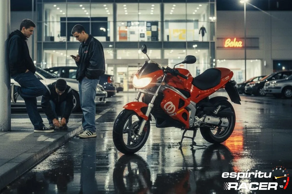 Nació como un híbrido adelantado a su tiempo. Tenía el corazón de un scooter —motor de 49 centímetros cúbicos, dos tiempos, variador automático—, pero el cuerpo y la postura de una deportiva: depósito entre el asiento y el manillar –en realidad era falso–, colín alto y manillar bajo. Una moto que se arrancaba sin embrague y se pilotaba con el puño, como una R de bolsillo.